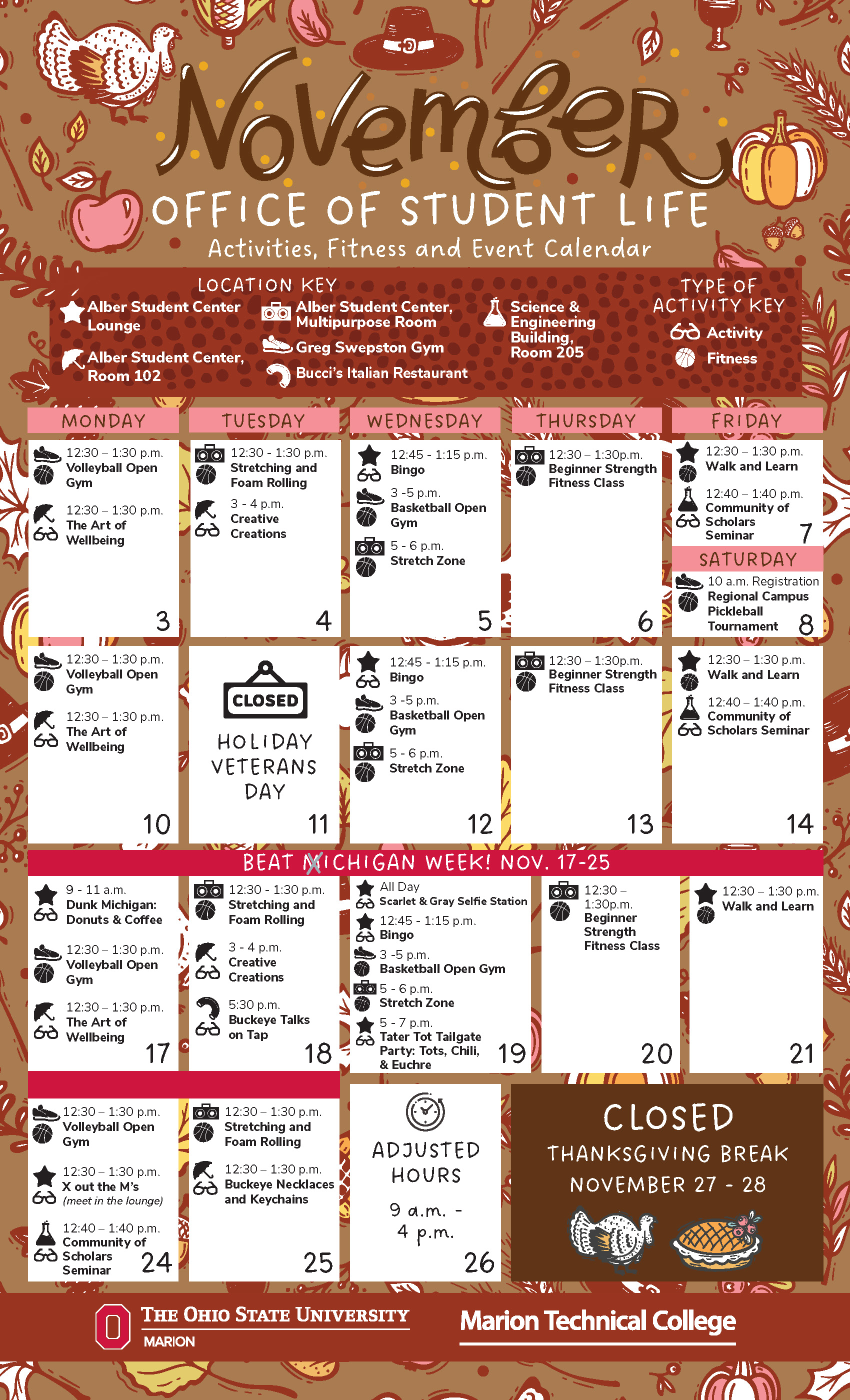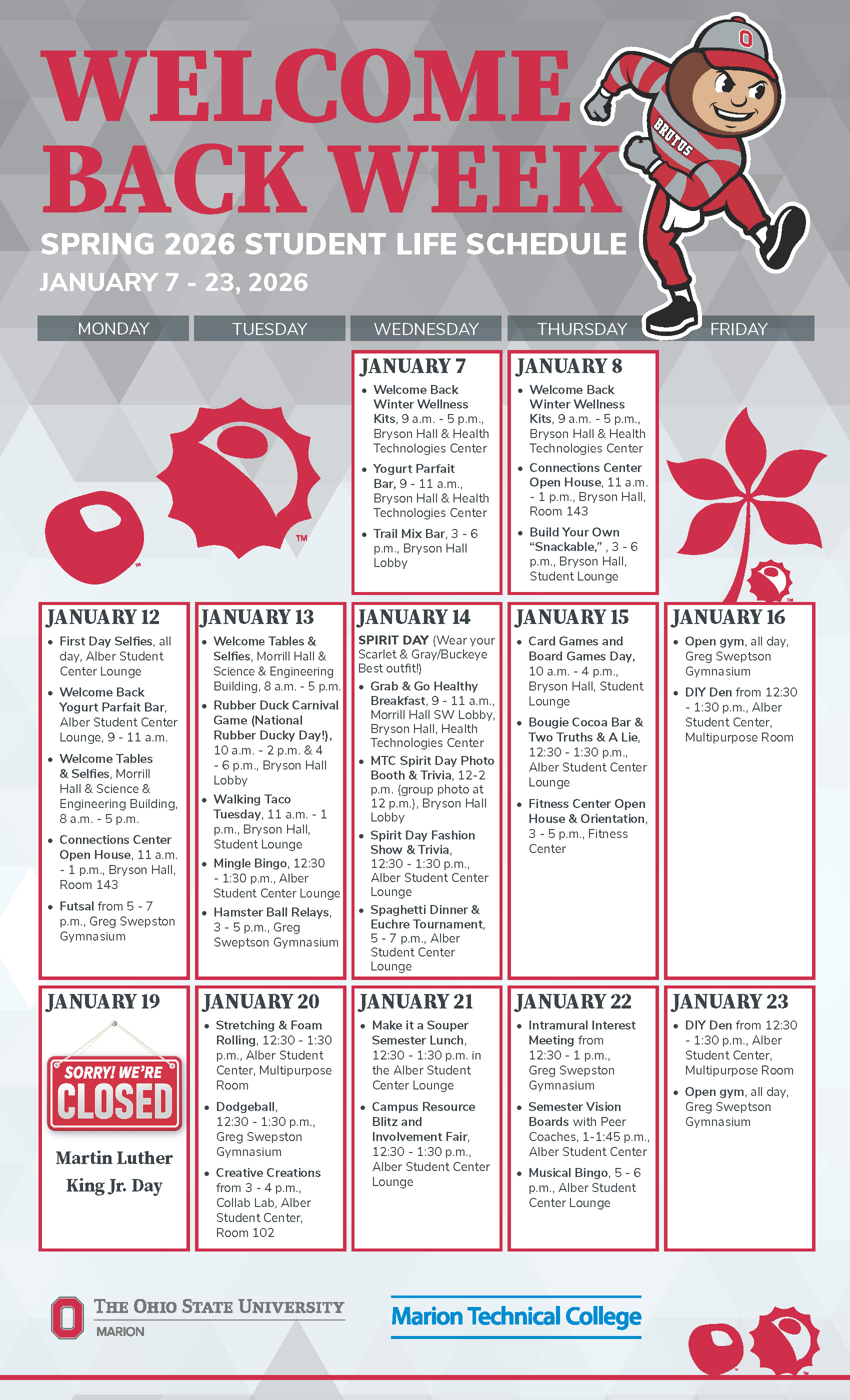 From student involvement fairs, cultural and social events, Homecoming Week, freshman welcome day, to concerts, and more, Student Life at Ohio State Marion works to enhance the college experience on our campus.
