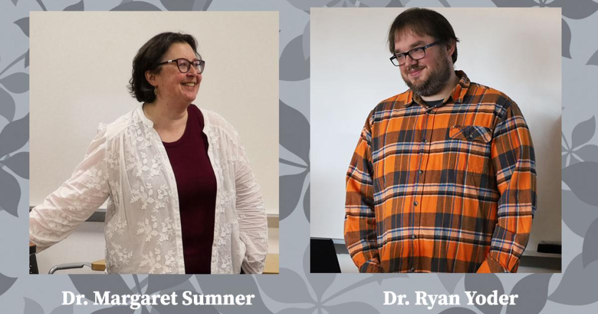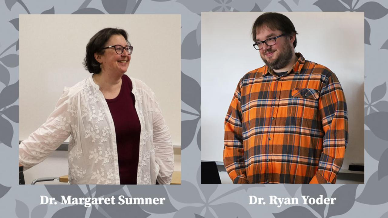A large group of faculty, staff, students, university administration, alumni, and community members gathered to surprise and pay tribute to two Ohio State Marion professors, awarding The Ohio State University Alumni Award for Distinguished Teaching to Dr. Margaret Sumner and Dr. Ryan Yoder during their respective Monday, April 6 afternoon class sessions.