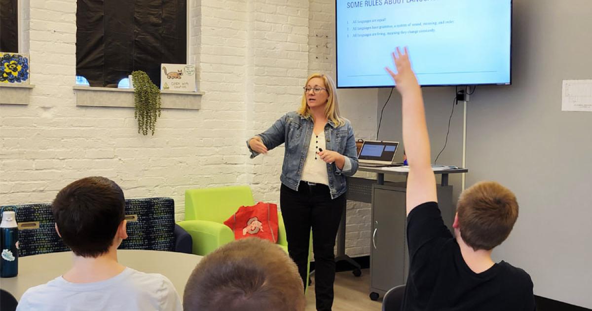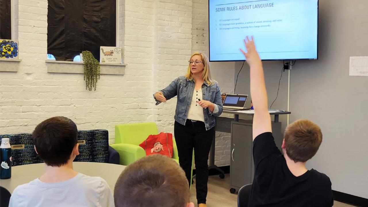 During the session, teens discussed their own experiences with language, learned about careers in linguistics and language science, and learned about how language works in the brain. Although the rec center is open to middle and high school students, the session was attended by middle school students.